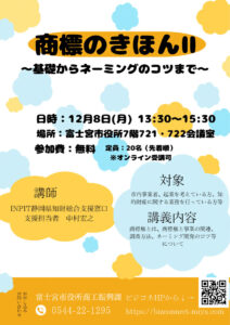 本セミナーでは、「商標権って?」「商標権と事業の関連は?」「商標権の調べ方は?」「商標権とネーミング開発の関連って?」など、商標に関する基本の講座を行います。